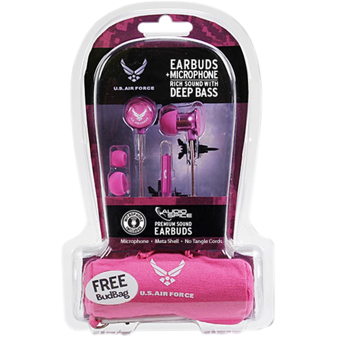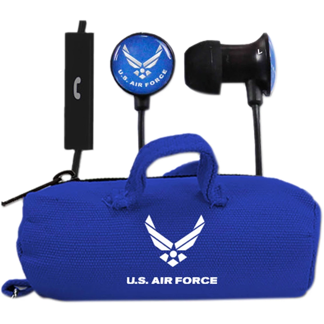 AudioSpice Scorch Earbuds with Mic feature a metallic housing with shiny U.S. Air Force logo that really pops and include an AudioSpice branded earbud bag from BudBags. The inline microphone lets you answer calls from your smartphone while on the go. These in-ear earbuds give full surround sound for an immersive listening experience and come with three different sizes of soft earcups and a 3.5mm gold-tipped audio connector for optimum sound. Model: C2F7K4.