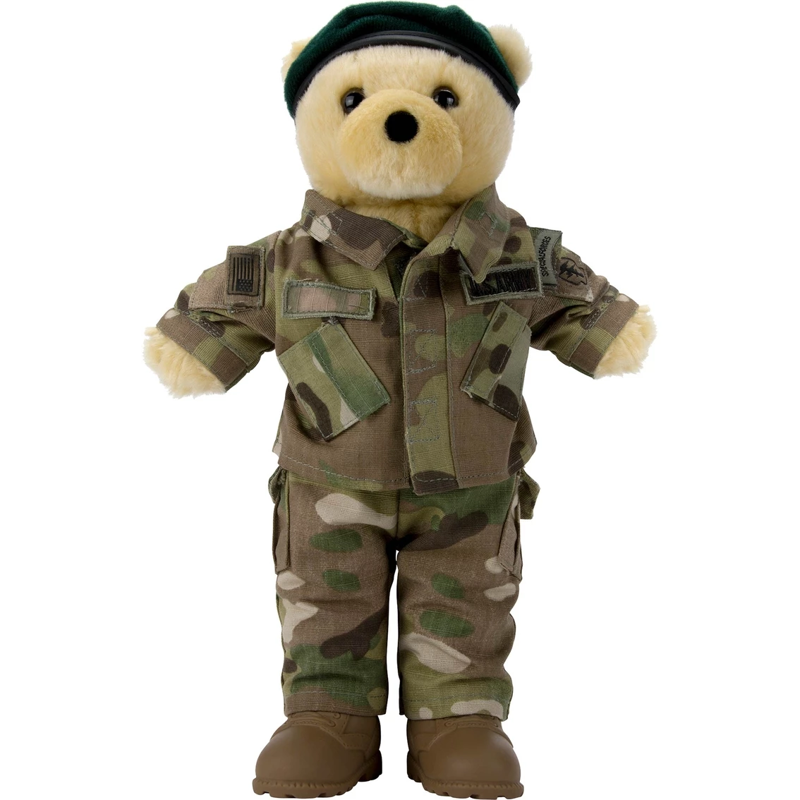 This miniature plush bear dressed in the Army Special Forces Multicam uniform makes a special keepsake. Made of polyester; uniforms are cotton/polyester. Surface washable; dry clean recommended.
