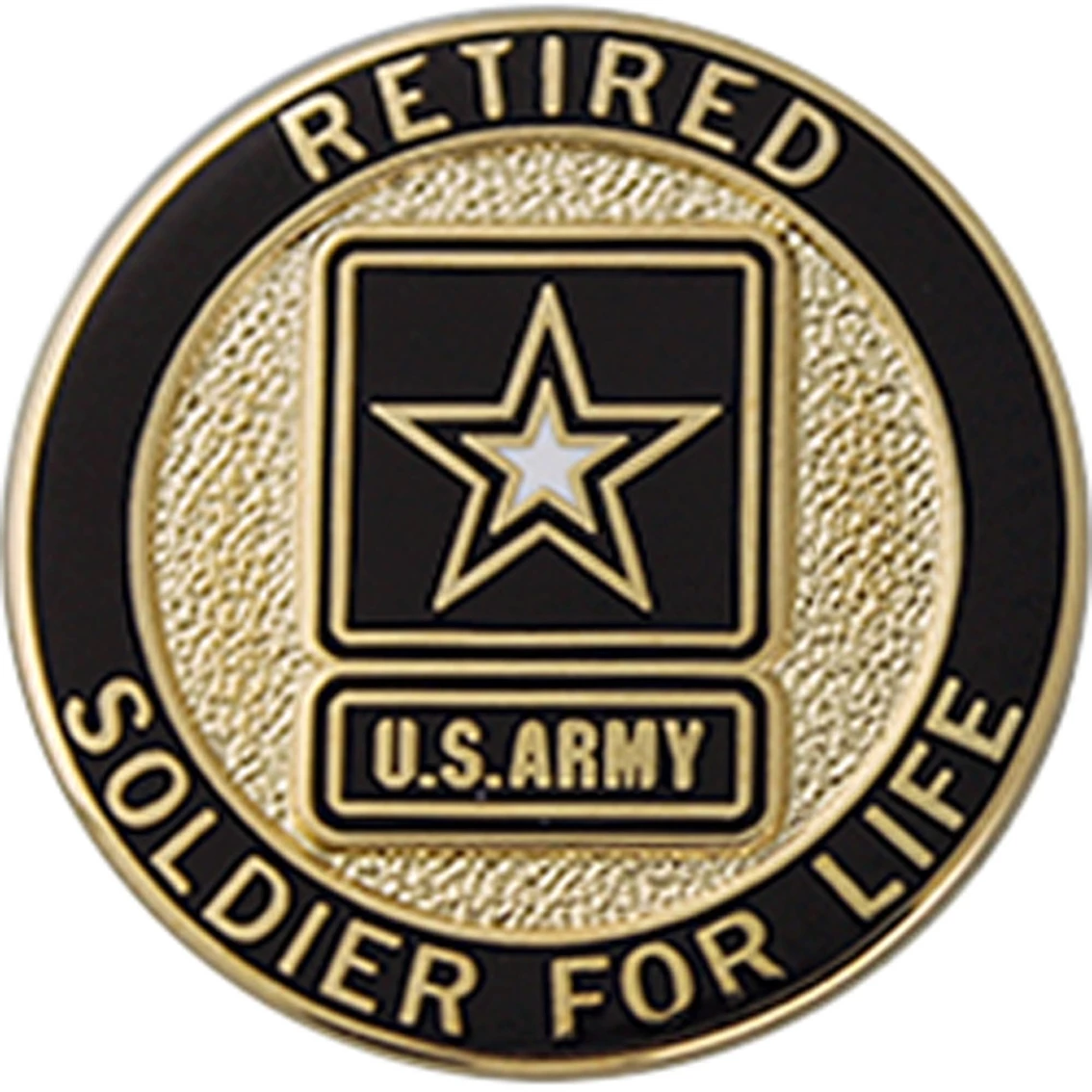 The U.S. Army Star is surrounded by Retired Soldier For Life on this lapel pin.