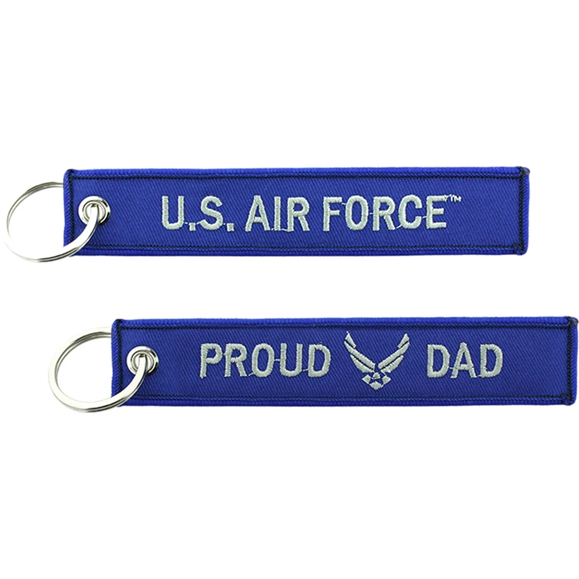 Air Force blue features PROUD DAD surrounding the USAF wings on one side with U.S. AIR FORCE on the other side.