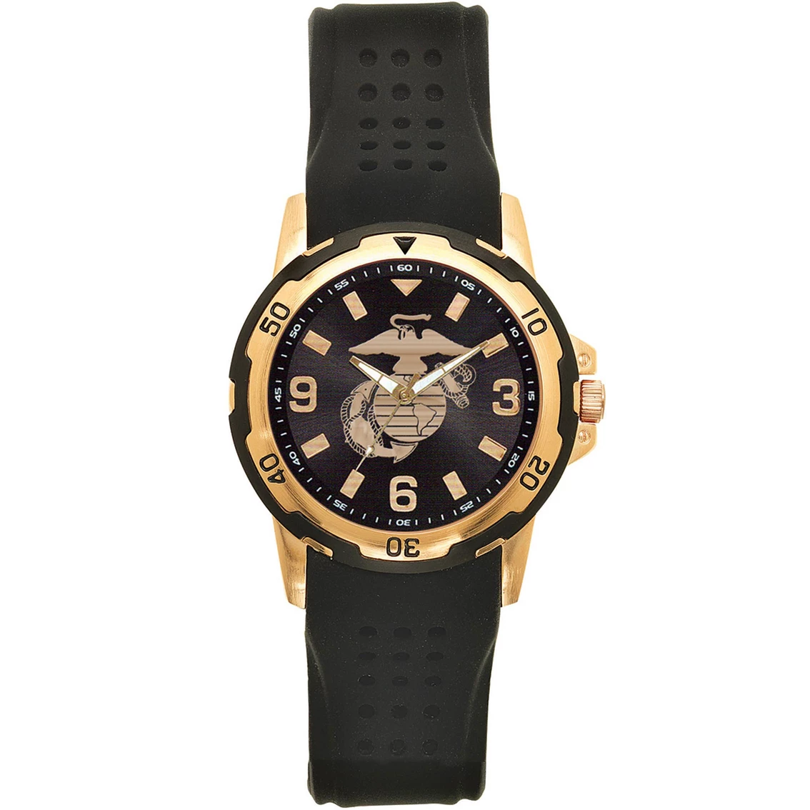This heroic timekeeper by Frontier serves with precision. Makes the perfect gift for anyone who is serving, or who has served, in the U.S. Marine Corps. Case is stainless steel. Features a silicone band and quartz movement. Water-resistant. Model: 54Q.