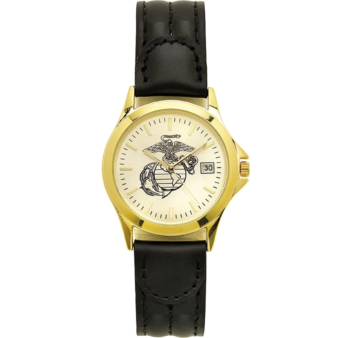 Featuring the Eagle, Globe and Anchor of the United States Marine Corps, the Frontier Women’s Aquaforce Marines Analog Quartz Watch comes with a deluxe leather strap. It has 30M water resistance, a brass case, stainless steel back and date. Model: 10OLX.