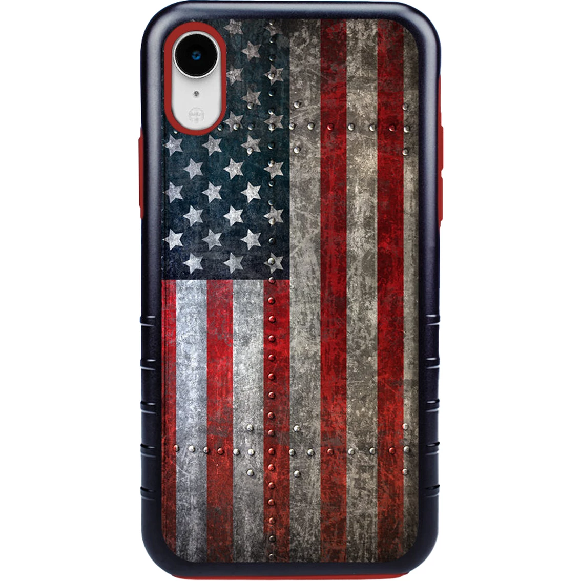 You know things only get done with hard work and sweat. You need a phone case that will keep up, so you turn to the American Might American flag iPhone case by Guard Dog. This high-quality design offers protection, aesthetics, functionality, and a sense of pride. An inner silicone lining cushions the device within a sturdy, hard plastic exterior that prevents scratches and other types of damage. Model: CFZ223.