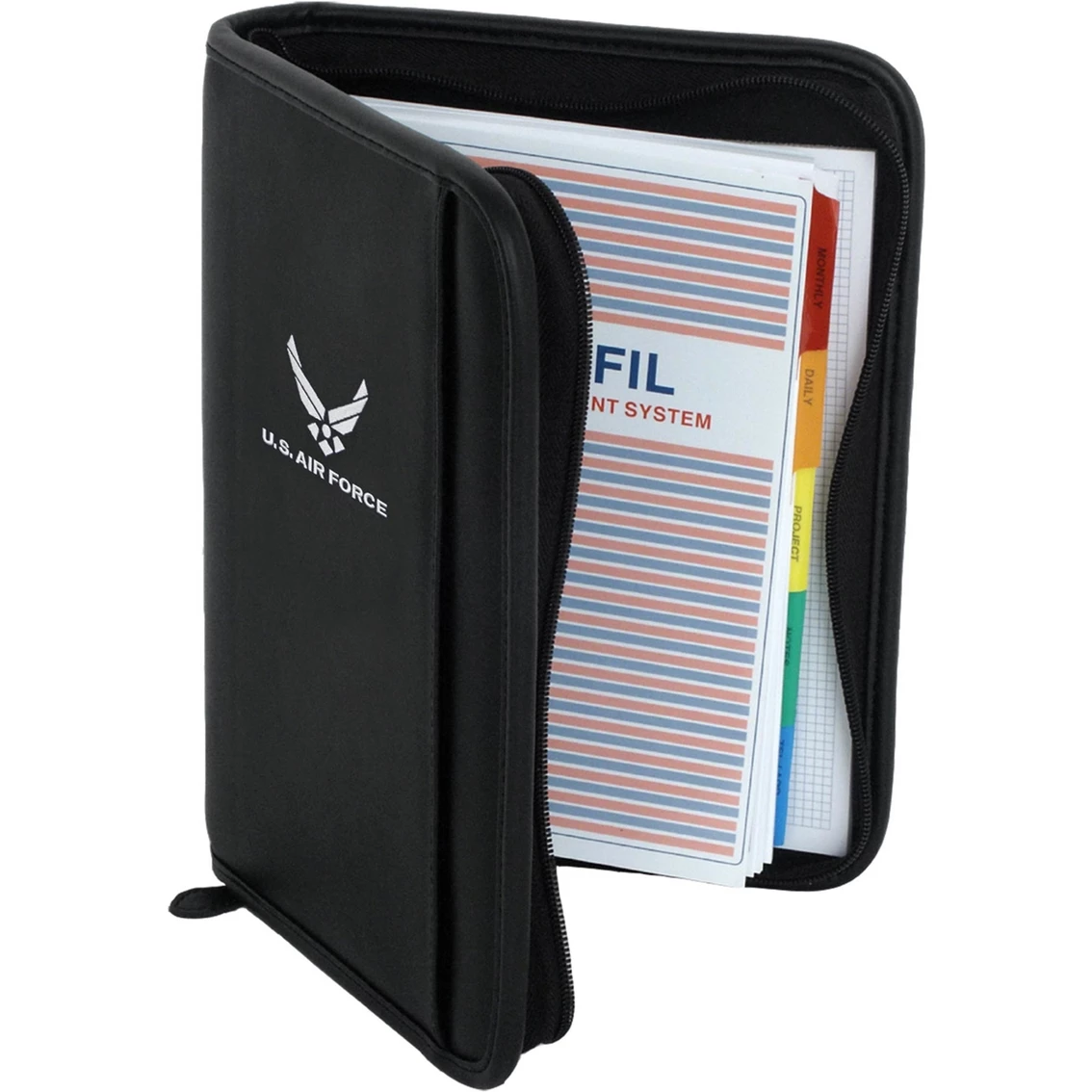Constructed of rugged 600 denier polyester construction, this Air Force Embroidered Large Planner from Mercury Luggage can handle almost anything. Planner includes multiple storage slots and a 3-ring binder fully stocked with planner pages and sections. Model: VE8615HA.