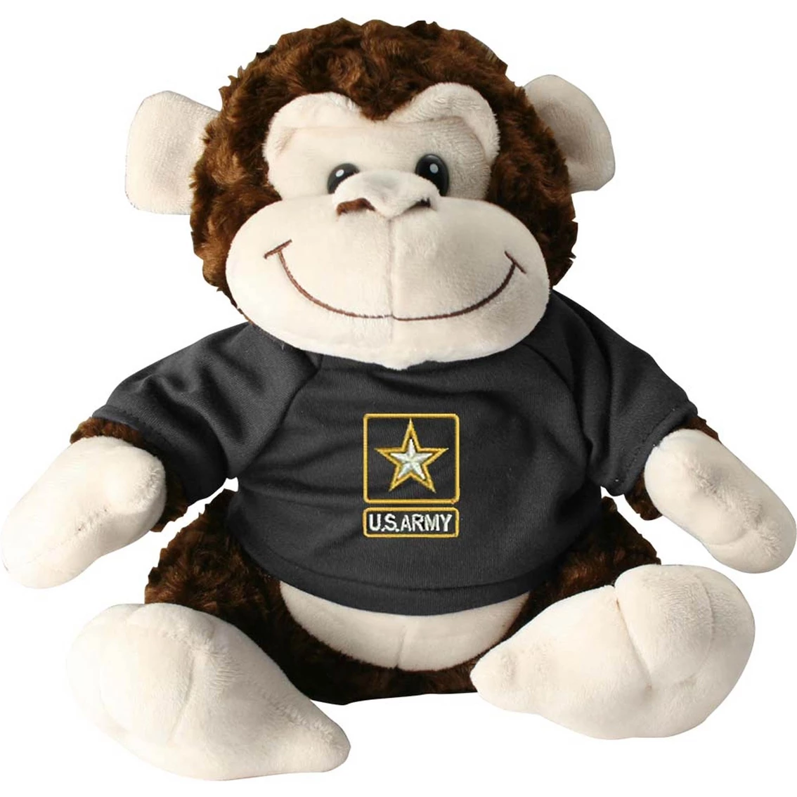 Officially Licensed 10-in. Army logo plush monkey from Mitchell Proffitt is perfect for nearly all special occasions. Their standard body positions and shapes make them well-suited for a wide range of different purposes. The plush animals are decorated with an imprinted T-shirt. Size may vary slightly. Model: PB228.
