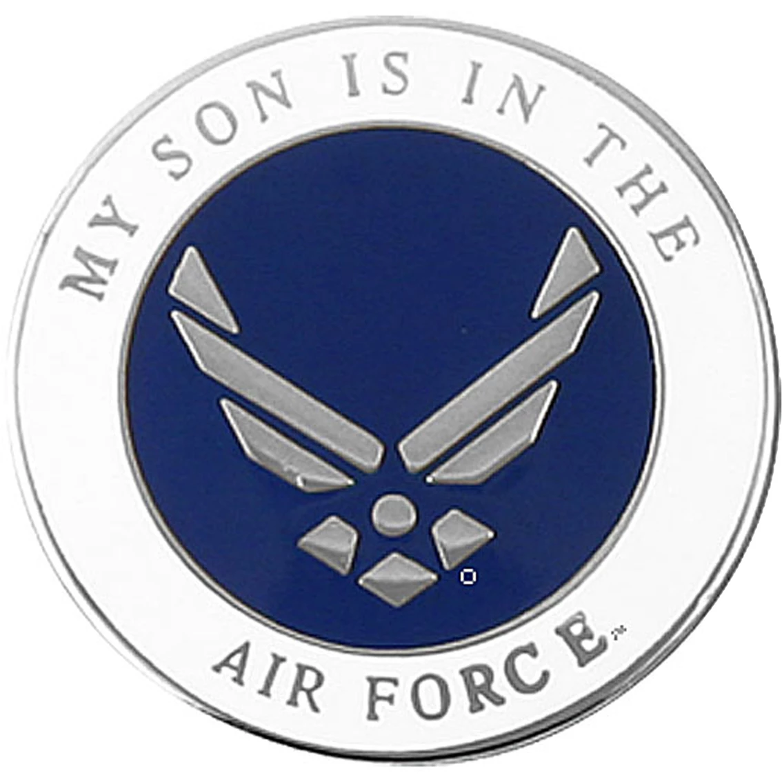 Wear your pride for all to see. Officially Licensed My Son is in the Air Force Symbol Lapel Pin from Mitchell Proffitt is made from the highest quality metals with Cloisonne decorating. Size: 1 in. diameter. Model: PI00015.