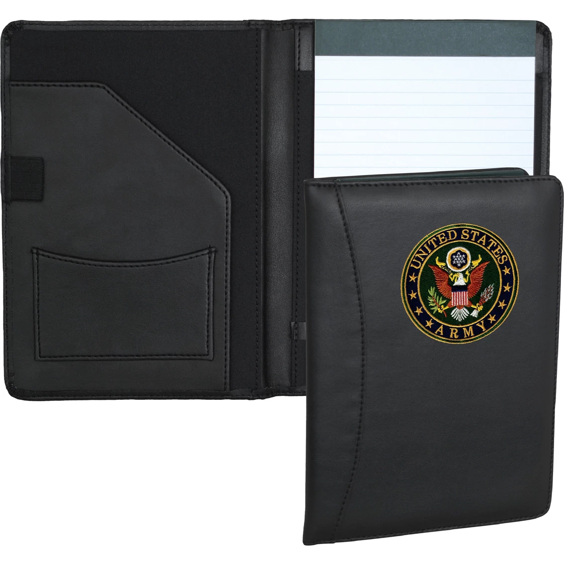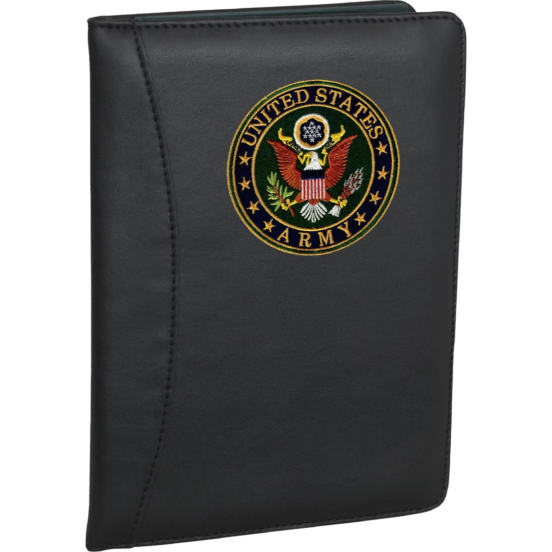 This Junior Padfolio with Army logo is made of 600 denier polyester. It features an interior slash pocket and one business card slot. The 5 x 7 in. writing pad is included. Padfolio has an elastic pen holder. Dimensions when open: 12.25 x 9.5 in. Model: MRC8525-USA.