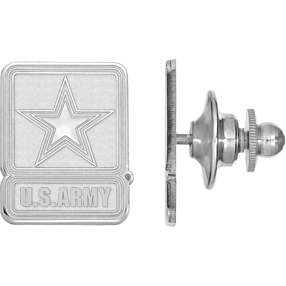 Express your love for the United States Army in an unique way with this striking sterling silver lapel pin. Featuring a star with letters, “U.S.Army”, this lapel pin has a gleaming polished finish to offer long lasting shine. This LogoArt lapel pin is sure to add a touch of Army pride to your style. Style: SS006ARM.