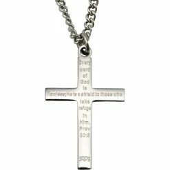 Wholesale π Shields Of Strength Men's Stainless Steel Thin Blue Line Necklace, Proverbs 30:5 β