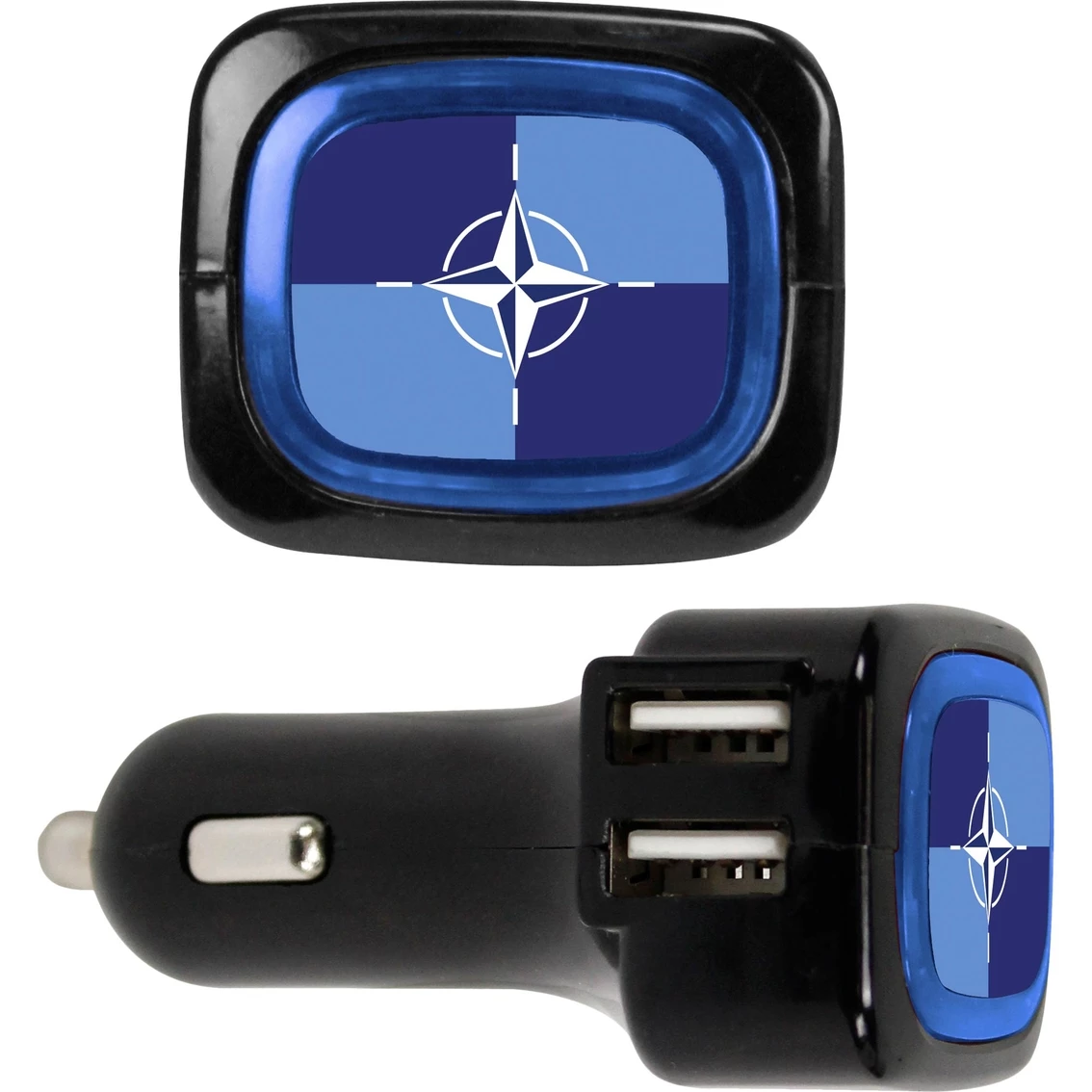 This 4-Port Car Charger from QuikVolt includes four 5V/5A USB ports. Opti-Charge technology detects needed power for the device that’s plugged in. Digitally printed NATO logo is prominently featured and a colorful ring lights up when the charger is in use. Compatible with most USB charging cables. The Car Charger is FCC and CE certified and RoHS compliant. Model: CG9B40.