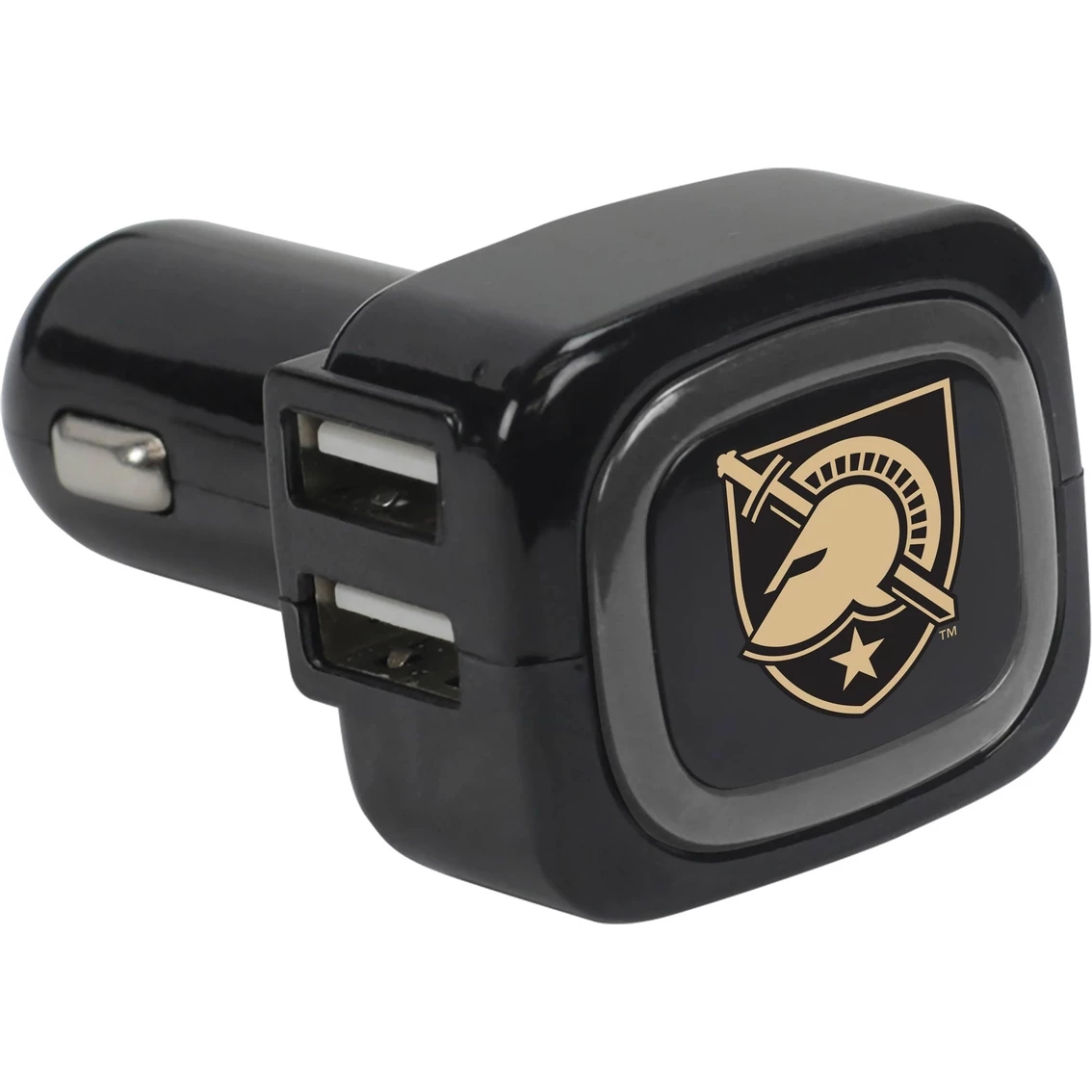 This 4-Port Car Charger from QuikVolt proudly displays the West Point Black Knights logo and includes four 5V/5A USB ports. Opti-Charge technology detects needed power for the device that’s plugged in. Digitally printed logo is prominently featured and the colorful ring lights up when the charger is in use. Charger is compatible with most USB charging cables and is FCC and CE certified and RoHS compliant. Model: C3KB40.