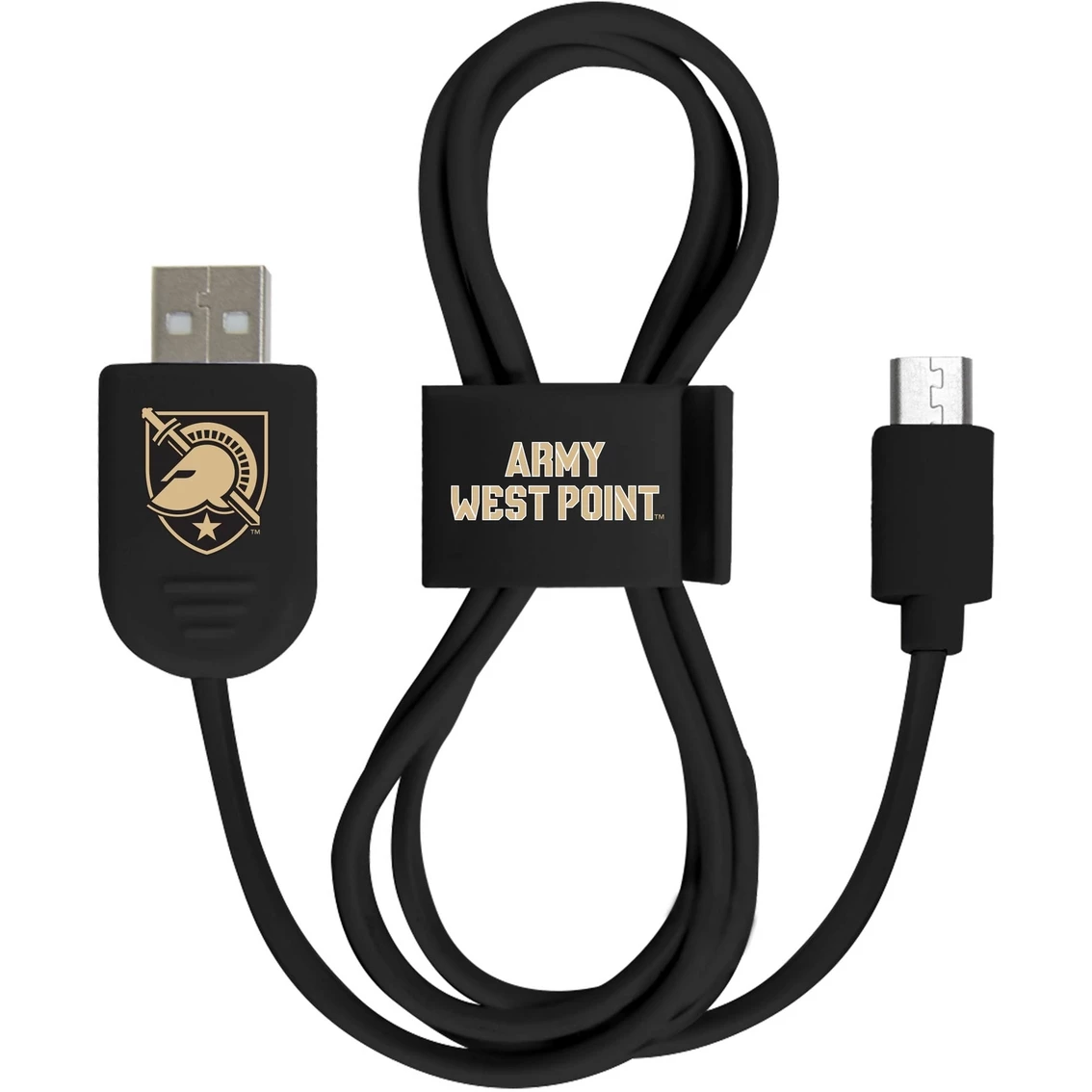Compatible with most Android and Micro USB devices, this QuikVolt Micro USB Cable proudly displays West Point Black Knights logos. This one-meter cable includes a QuikClip cable organizer for ease of use. Model: C3K010.
