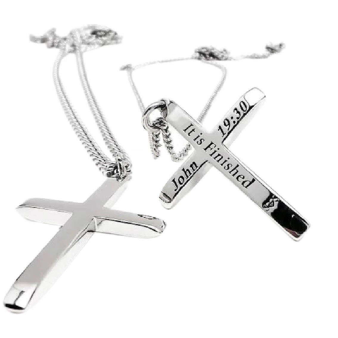 The cross is a reminder that Jesus made the ultimate sacrifice and died for everyone’s sins. This men’s cross necklace is a beautiful piece to wear as a daily remembrance of the wonderful gift He gave. The front of the stainless steel cross necklace is plain with a shining finish and tapered ends. On the back is an inscription of Jesus’ words, “It is finished,” from John 19:30. Includes a 24 in. stainless steel curb chain. This simple yet stunning necklace makes a special gift for any man who loves Jesus and is thankful to Him for finishing His work to save us all. Style: 28307.