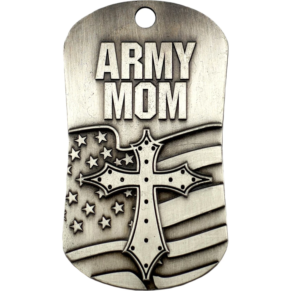 As a military mom, you know that finding strength in the Lord is important for both you and your soldier. This beautiful mom antique finish dog tag necklace with a restorative verse from 1 Corinthians 13:7-8 provides you with a powerful sense of security you can refer to when your soldier is away. This verse states, “Love bears all things, believes all things, hopes all things, endures all things, love never fails.” On the reverse side, “Army Mom,” or “Marine Mom,” or a cross, and the American flag are engraved. This piece of zinc Christian jewelry has a dog tag that measures 1.95 inches by 1.08 inches, and it comes with a matching 24-inch stainless steel chain. Wear one yourself and provide one as a gift to another brave Army mom that could use the strength of the Lord.