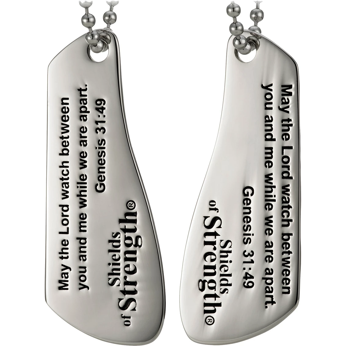 SKU: 8690762 Categories: Jewelry & Watches, Military Pride Tags: 2 Part Necklace, Holiday Gift Guide, Jewelry & Watches, Shields of Strength, Shields of Strength Stainless Steel Genesis 31:49 Split Shield