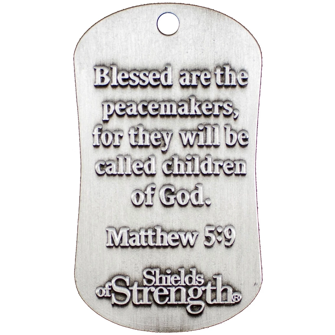 Police Officers serve around the clock to protect American families while placing themselves in dangerous and high stress environments. Their symbol is a “Thin Blue Line” which represents the men and women who stand between good and evil. This Thin Blue Line design was a collaboration project with Federal, State, and Local Law Enforcement Agencies across the United States. Shields of Strength’s goal is for all 900,000 USA Law Enforcement Officers to have God’s Word around their neck as a physical reminder of His love and promise to be with them wherever they go. The beautiful zinc Christian jewelry features the words of Matthew 5:9, “Blessed are the peacemakers, for they will be called children of God,” making it the perfect way to express love, thanks, and support for the Police Officers, Sheriff Deputies, Law Enforcement Professionals who protect our loved ones while putting their own lives on the line. The dog tag measures 1.95 inches by 1.08 inches and has an American flag with a thin blue line strip on the front. The stainless steel ball chain measures 24 inches in length. To keep the necklace looking its best, wash with warm, soapy water or buff with a polishing cloth.