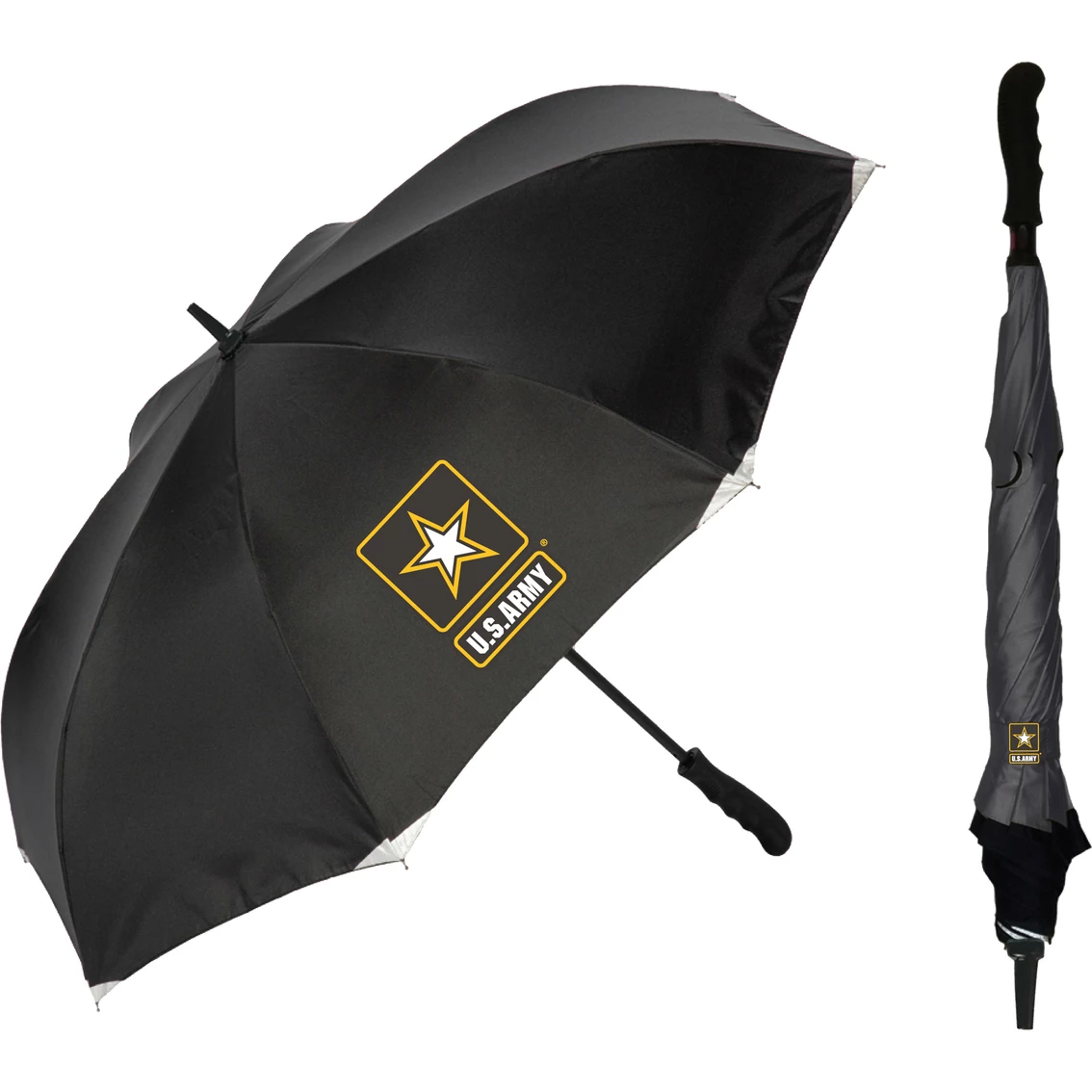 Show your Army Pride in the rain. This TLJ Marketing & Sales Invertabella Army Foldable Umbrella is a deluxe inverted folding umbrella featuring the Army logo and a rubberized grip handle. Model: 3900 – A.